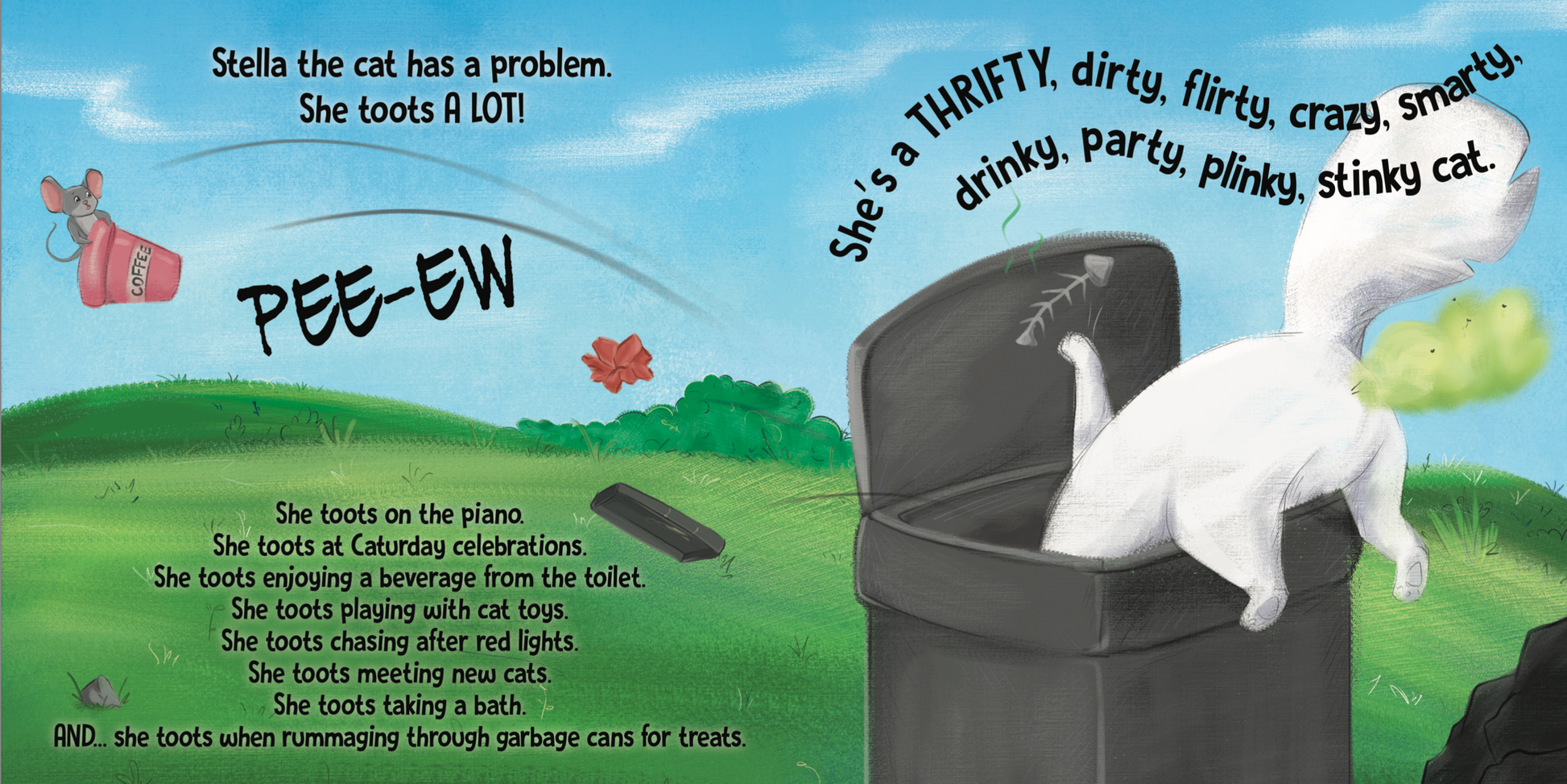 Whether she’s chasing red lights around the room or farting in the bathtub, Stella the Stinky Catwill have you laughing out loud before you can say, “sleepy, leapy, lazy, thrifty, dirty, flirty, crazy, smarty, drinky, party, plinky, stinky cat!”