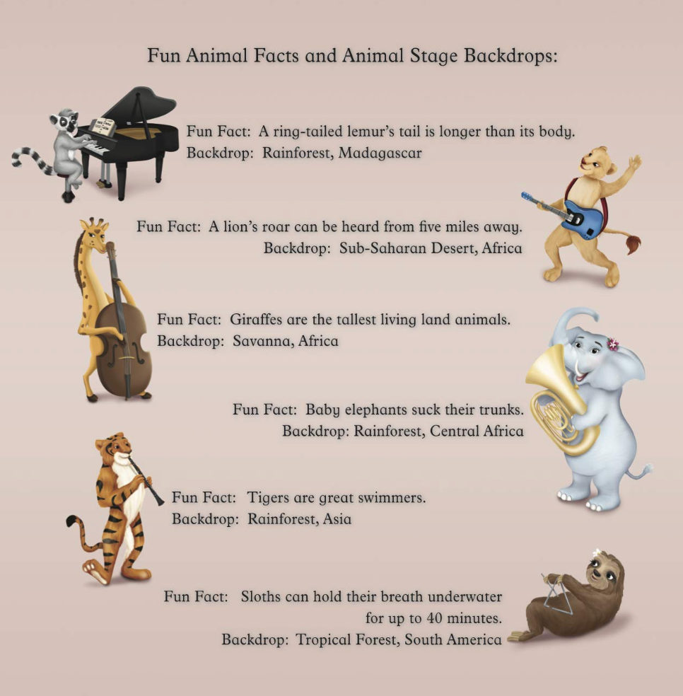 The fun facts and animal math are extras and not part of the story. The math problems at the end are meant to prompt you and your child to go back to that animal page and count them. You can use this as a secondary counting exercise. If your child has sensory issues you might want to skip the sounds.